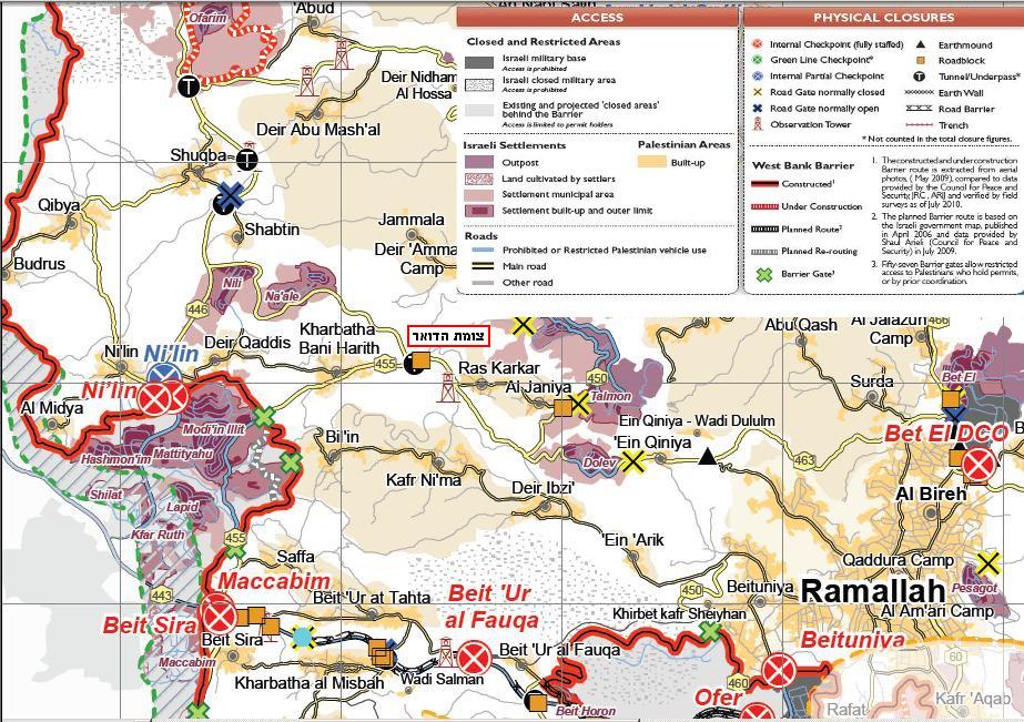 המוקד להגנת הפרט - מפת אזור הכפר חרבתא - חסימת "צומת הדואר"