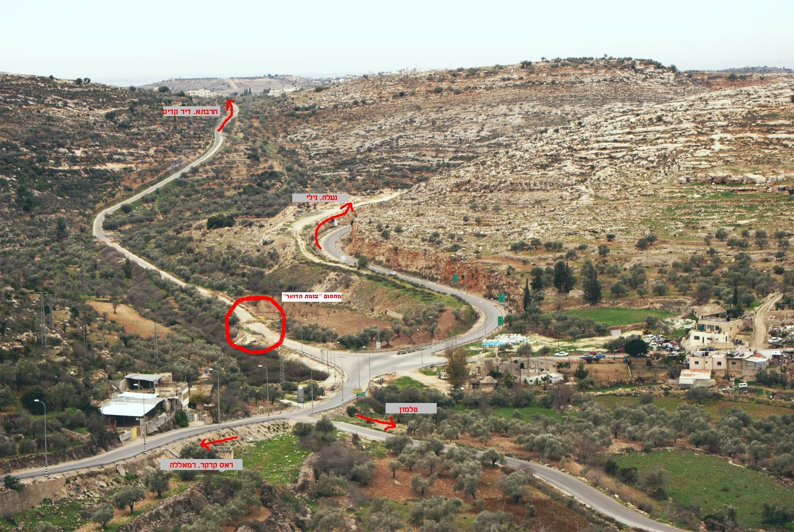 מפת אזור הכפר חרבתא - חסימת "צומת הדואר"